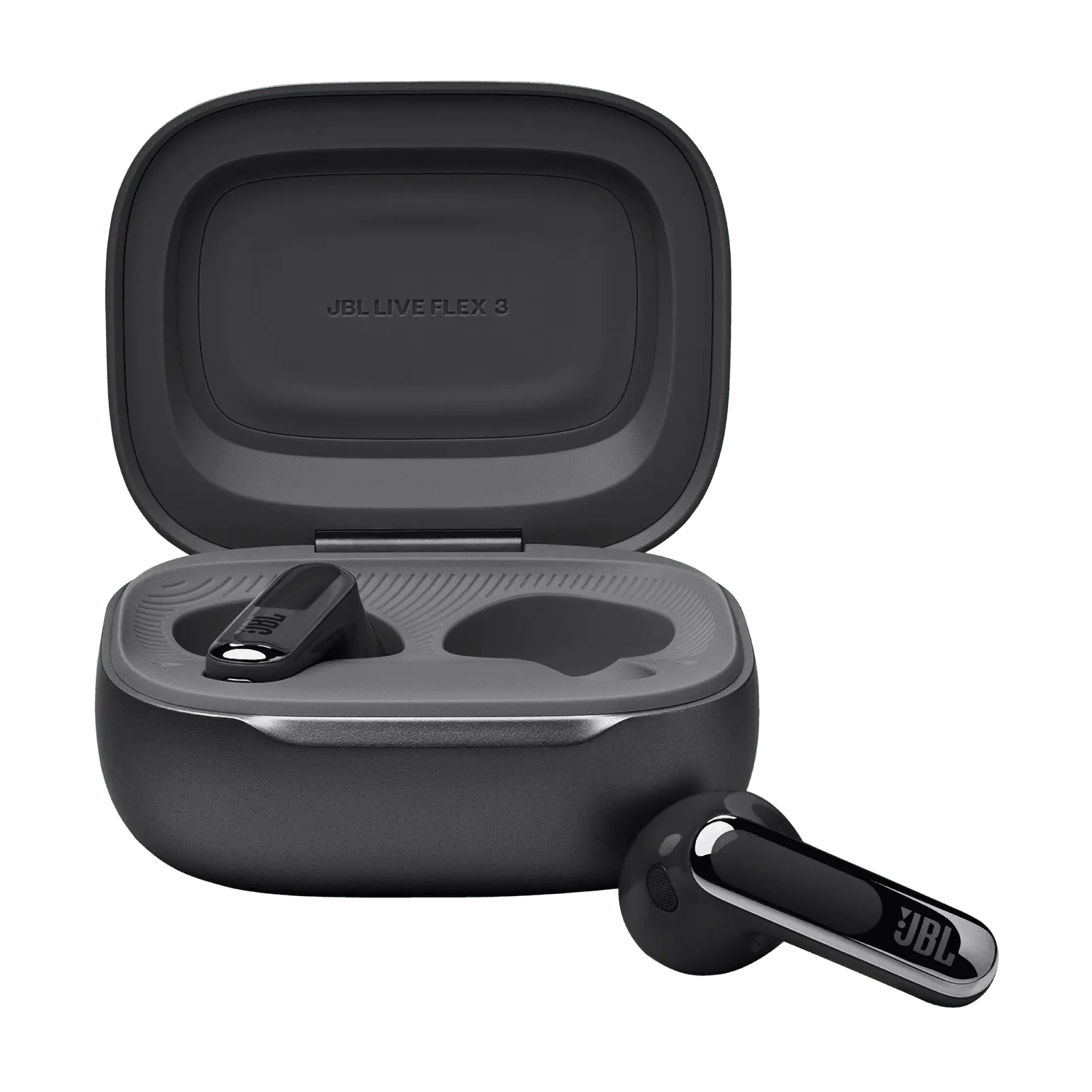 Vă puteți personaliza toate aspectele căștilor JBL Live Flex 3 cu ecranul tactil de 1,45 inchi de pe carcasa dvs. Smart Charging Case™. Ecranul vă oferă control complet asupra sunetului pe orice dispozitiv – laptop, televizor, smartphone-uri sau tablete – fără a fi nevoie să accesați aplicația JBL de pe smartphone.
