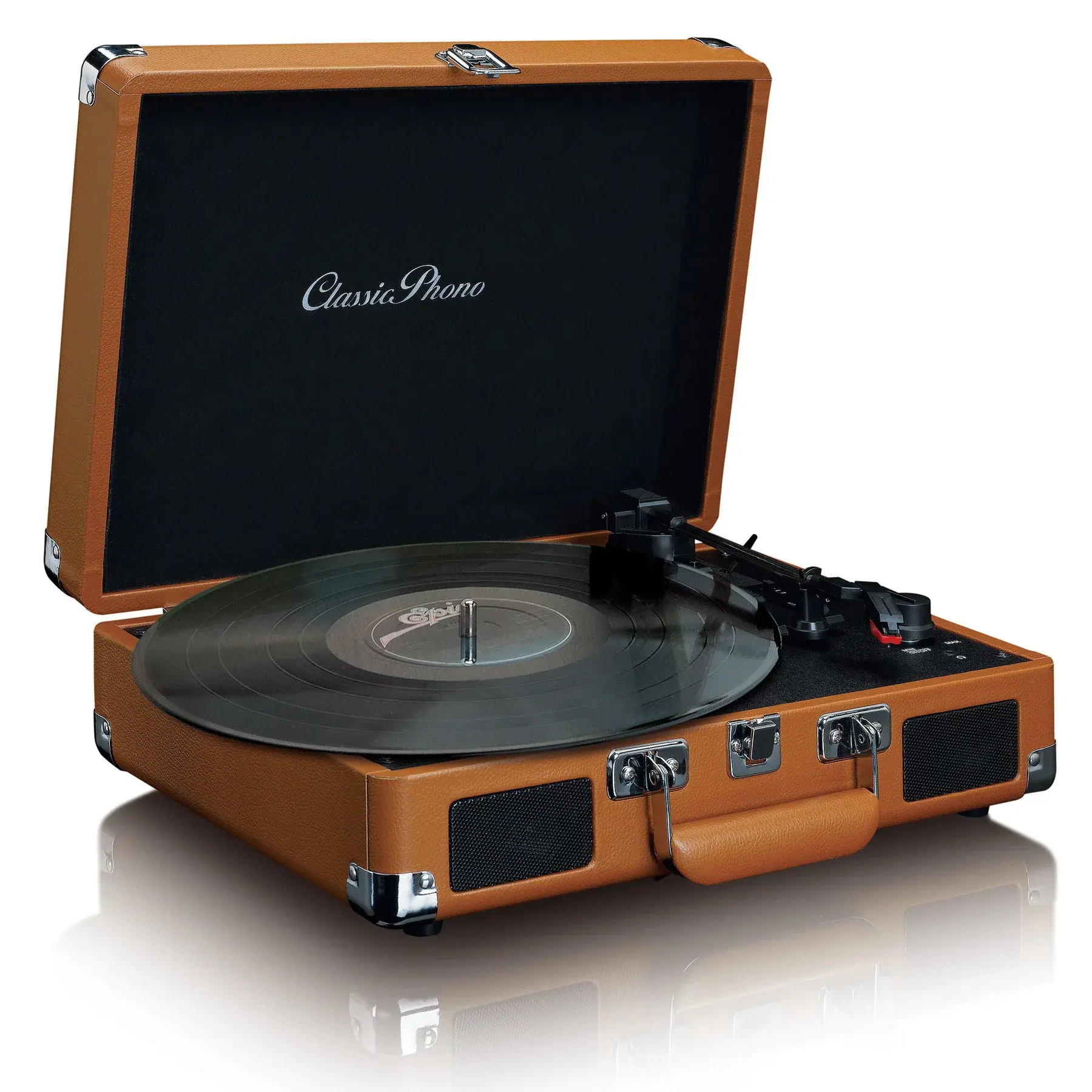 Lenco Classic Phono TT-10 este echipat cu un cartuș stereo ceramic cu ac integrat. Puteți reda discurile la 3 viteze diferite: 33 RPM, 45 RPM și 78 RPM. Pick-up-ul are o transmisie cu curea, două difuzoare încorporate, intrare AUX, ieșire RCA, ieșire pentru căști și o ieșire de linie pentru conectarea la boxe externe sau alte echipamente.